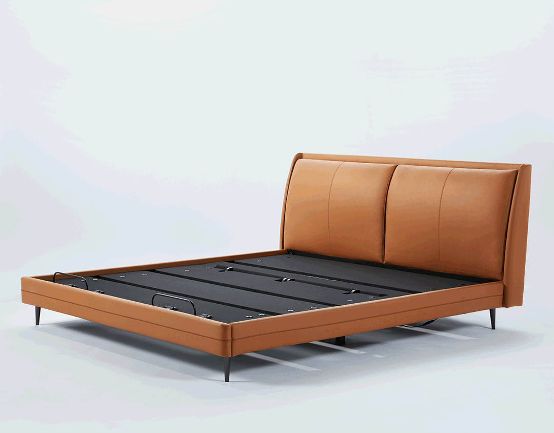 Phần da bọc đầu giường và xung quanh giường được làm từ chất liệu da kỹ thuật Litchi thế hệ thứ tám, có kết cấu và cảm giác giống hệt da thật. Da litchi thoáng khí và có thể chống mài mòn, chống nước, chống dầu, chống bám bẩn, vô cùng thân thiện với da người.