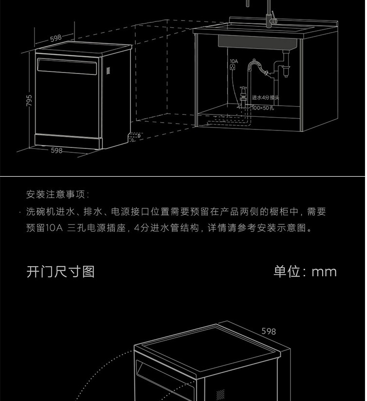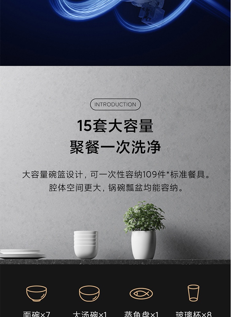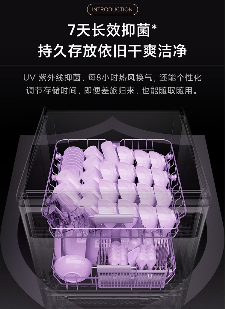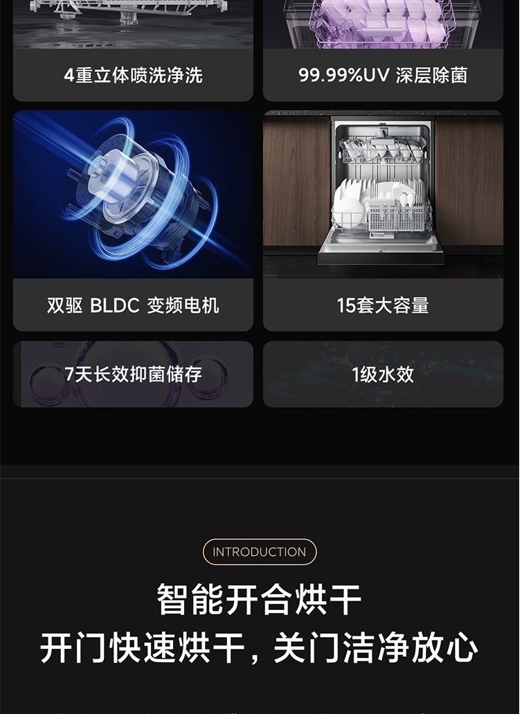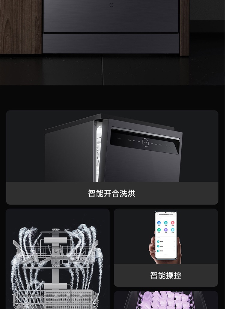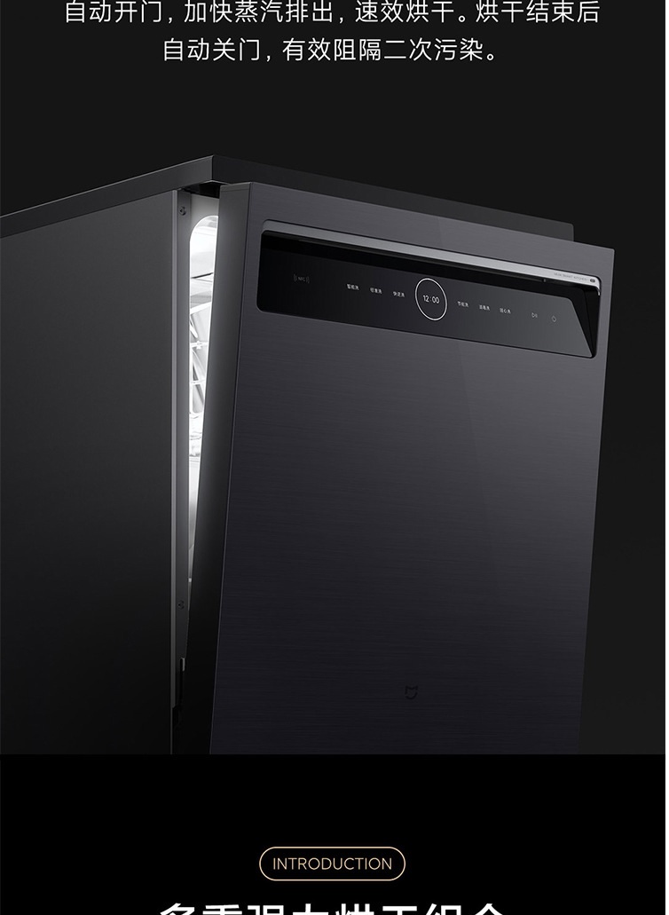 Máy rửa bát xiaomi mijia S1 (15 bộ) Cánh cửa có thể tự động đóng mở; cửa sẽ mở ra để đẩy nhanh quá trình làm khô và sau đó đóng lại để bảo vệ bát đĩa sạch khỏi bụi và phấn hoa.