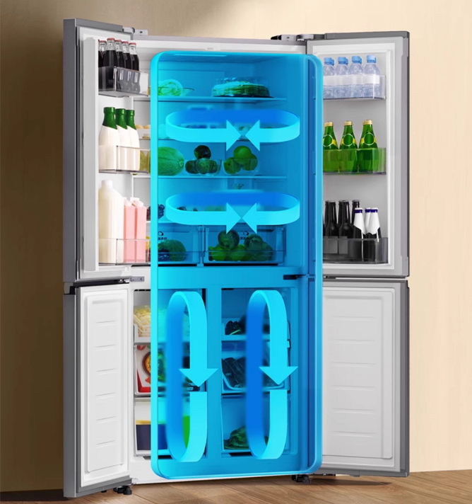 Tủ lạnh 4 cánh 501L được trang bị công nghệ chu trình làm mát không khí 360°, giúp làm mát nhanh và đều, tránh hiện tượng sương giá. Hệ thống tuần hoàn làm mát bằng không khí giữ nguyên độ tươi và hương vị thơm ngon của thực phẩm, loại bỏ hoàn toàn những rắc rối khi phải rã đông thủ công. Đây là sự lựa chọn lý tưởng cho việc bảo quản thực phẩm một cách tối ưu và tiện lợi.