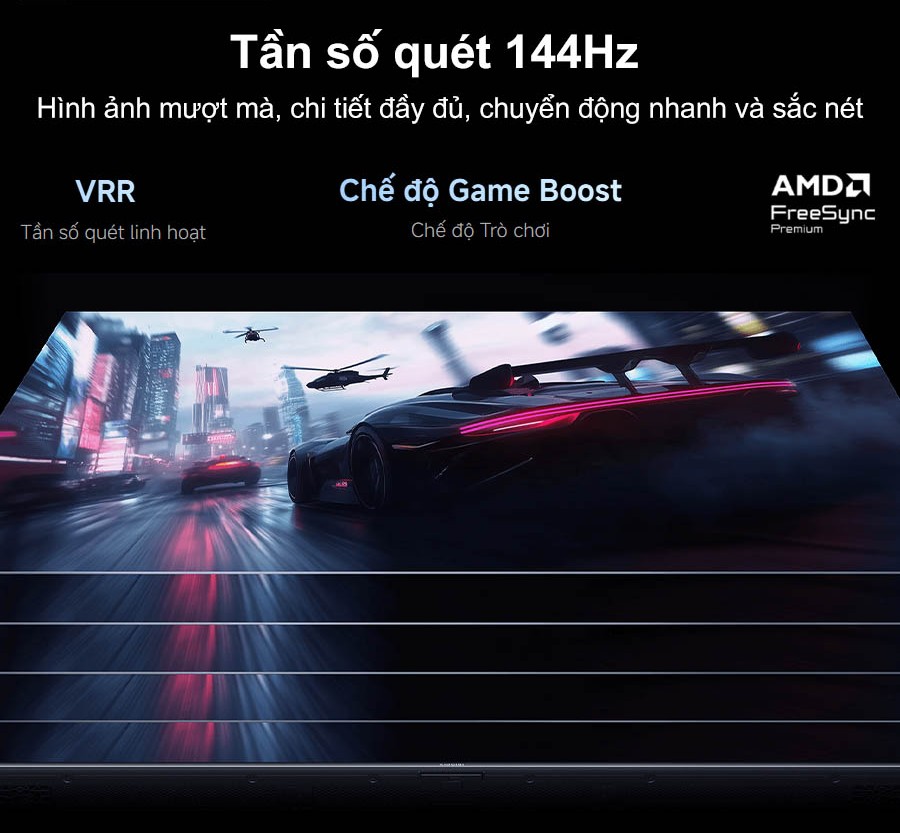 - Tần số quét gốc 144Hz cho chuyển động mượt mà, hạn chế giật lag