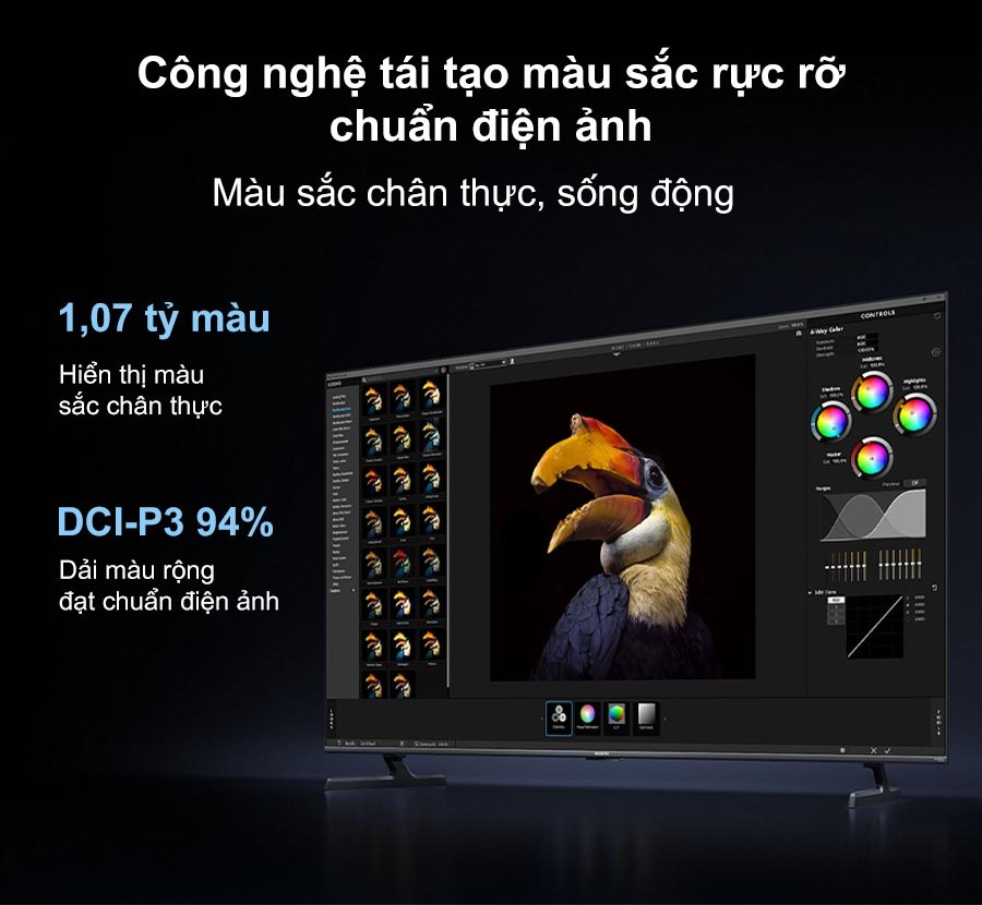 - Hỗ trợ 1,07 tỷ màu và dải màu rộng đạt chuẩn điện ảnh