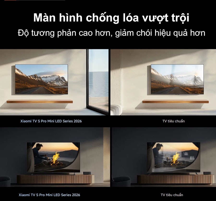 Đặc biệt, Tivi Xiaomi 75 Inch S Pro Mini LED được trang bị lớp phủ chống phản chiếu tiên tiến giúp giảm độ phản xạ toàn màn hình xuống chỉ 1,8%. Trong khi đó, độ phản xạ của lớp phim chống phản chiếu (LR) chỉ còn 0,5%, giúp thể hiện màu đen sâu hơn, độ tương phản cao hơn cho hình ảnh rõ nét, sống động ngay cả khi xem trong phòng nhiều ánh sáng.