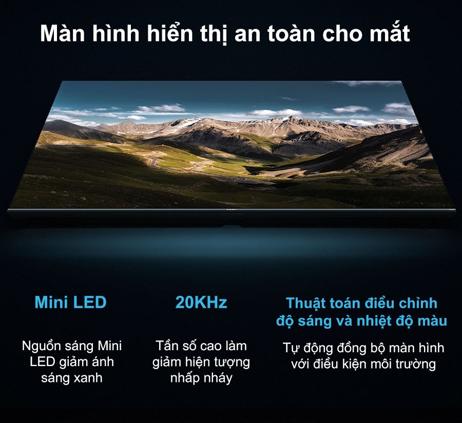 - Nguồn sáng Mini LED giảm ánh sáng xanh, bảo vệ mắt tối ưu