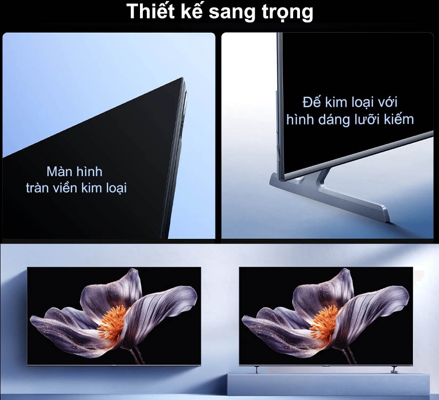 Ngoài ra, phần chân đế kim loại được tạo hình lưỡi liềm độc đáo, vừa chắc chắn vừa tạo điểm nhấn sang trọng. Với hai chế độ lắp đặt linh hoạt, treo tường hoặc đặt trên kệ, cùng tông màu xám đậm trung tính, Tivi Xiaomi 75 Inch S Pro Mini LED này dễ dàng hòa hợp với nhiều phong cách thiết kế, nâng tầm thẩm mỹ cho ngôi nhà.