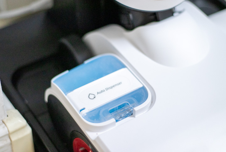Dyad Pro Combo có một điểm cộng lớn chính là máy có thêm ngăn chứa nước lau sàn, có thể tự động pha nước lau sàn theo đúng tỉ lệ phù hợp với khối lượng chất bẩn trên sàn. Dreame H12 Dual cũng có thể sử dụng nước lau sàn nhưng người dùng cần tự pha vào bình chứa nước sạch, sẽ mất công hơn.
